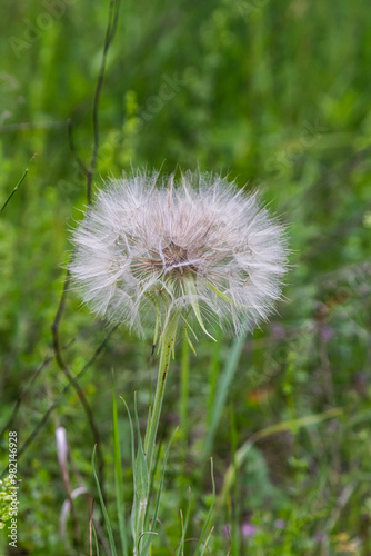 Fototapeta premium Goatsbeard, Tragopogon pratensis, flower seed head close up with feathery...