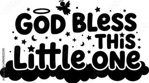 Fototapeta premium God bless this little one lettering with angel and stars vector art