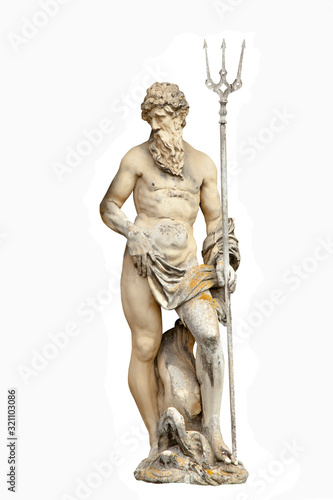 © zwiebackesser, Fototapeta premium God of seas and oceans Neptune (Poseidon). The ancient statue isolated on white background.