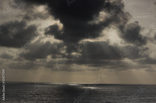 © girish, Fototapeta premium god rays rainy season ocean dark clouds