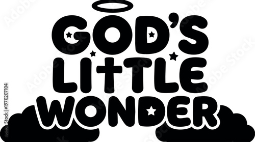 Fototapeta premium God s little wonder text with stars halo and clouds vector art