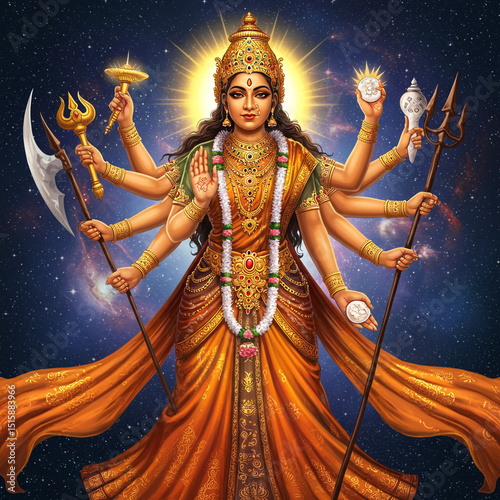 © Deepa, Fototapeta premium Goddess Kushmanda, Eight-Armed Deity