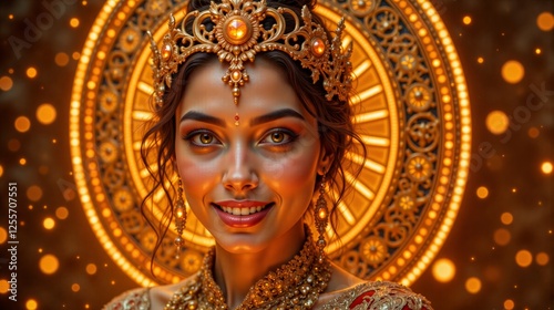 Obraz premium Goddess radiating divinity and spirituality with a joyful expression in a golden aura