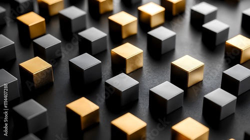 © Jihad, Obraz premium Gold and Black Cubes Arranged in a Pattern