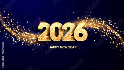 © Elena, Fototapeta premium Gold and blue sign with the number 2026 on it