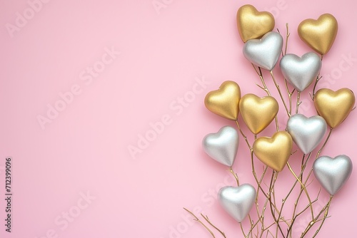 Fototapeta premium Gold and Silver Hearts on Blush Pink Background