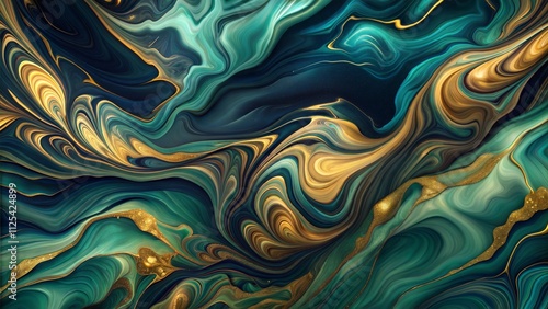 © Olga, Obraz premium Gold and teal fluid marble pattern