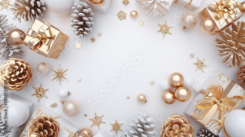 Fototapeta premium Gold and White Christmas Flat Lay Mockup Background Pro