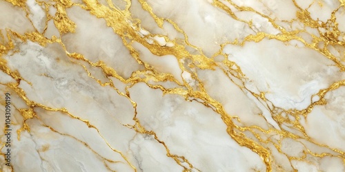 © Atittaya, Fototapeta premium Gold and white marble wall with streaks macro