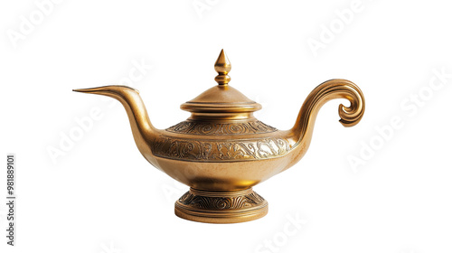 Fototapeta premium gold Arabian genie lamp on a white transparent background