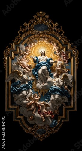 Fototapeta premium Gold Baroque Frame Virgin Mary Assumption Cherubs Sculpture