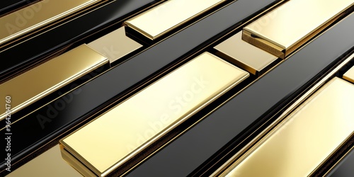 Obraz premium Gold bars are neatly arranged on a black surface, emphasizing a modern and...
