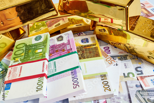 © EwaStudio, Naklejka premium Gold bars, Financial, business investment concept. Gold Bars. Euro Money