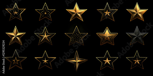 © febyanda, Obraz premium Gold & Black Star 3D Render Illustrations