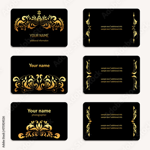 © Soliannikova, Fototapeta premium Gold business card collection vintage style.