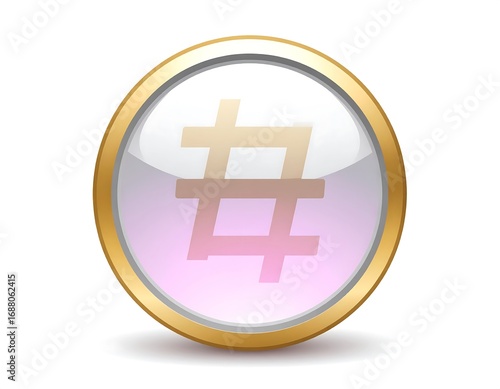 © Rohman, Fototapeta premium Gold button with a hashtag symbol