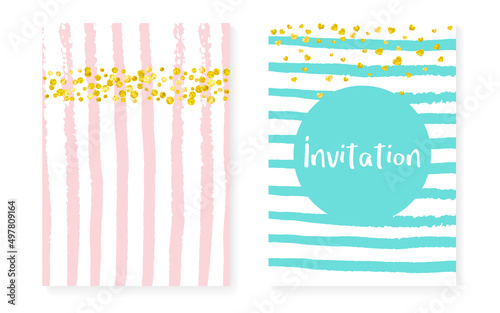 Fototapeta premium Gold Chic Texture. Stripe Simple Frame. Turquoise