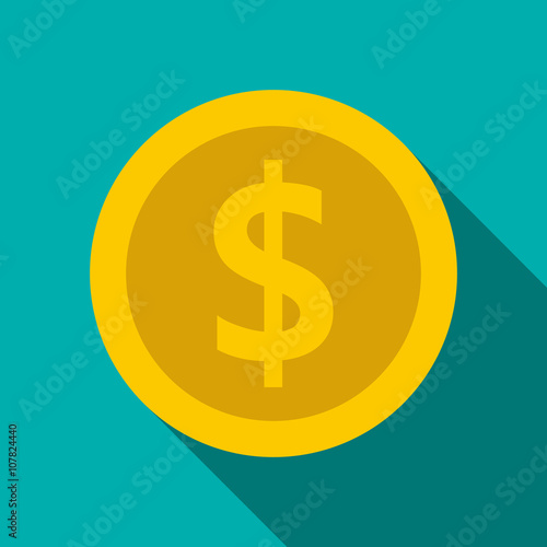 Fototapeta premium Gold coin with dollar sign icon, flat style