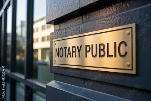 © mediastok.ai, Fototapeta premium Gold-colored notary public sign on a dark gray building.