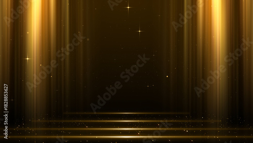 Fototapeta premium Gold Curtain and Glowing Steps Particles Awards Trailer Titles Cinematic Openers Luxury Intro Background