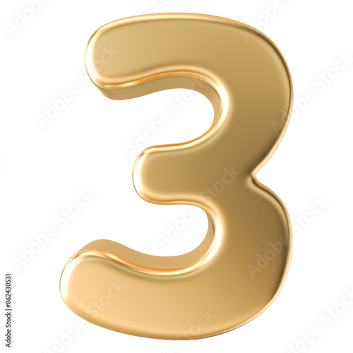 © Chetra168, Naklejka premium Gold 3D Number 3