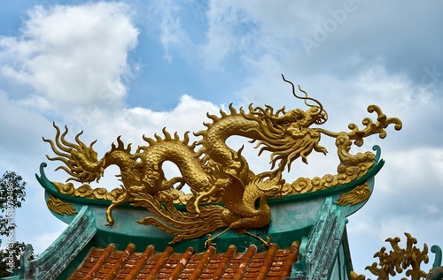 © Viacheslav, Fototapeta premium Gold dragon on a canopy. Chinese Temple
