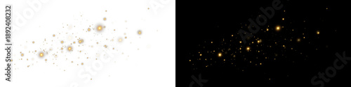 Fototapeta premium Gold dust on transparent background, scattered gold dust, glitter light effect,sparkling overlay