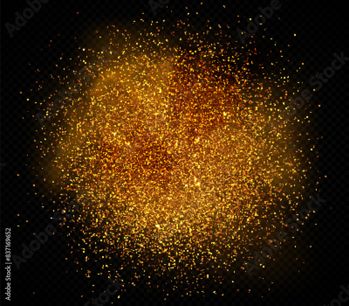 © vipman4, Fototapeta premium Gold dust sequins, cloudy abstract elements on transparent background, gold sequins. Vector illustration.