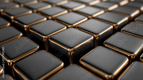 © Lemdah, Obraz premium Gold-edged cubes, grid pattern, background blur, website design