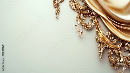 © lisa, Obraz premium Gold Fabric Draped with Ornate Gilded Accents