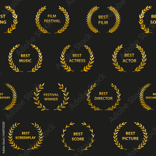 Obraz premium Gold film award wreaths. Seamless pattern. Vector illustration.