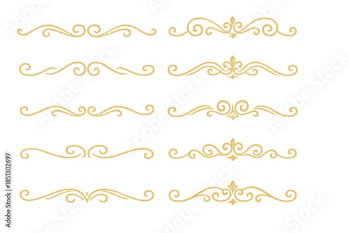 Obraz premium Gold flourishes and ornate divider collection with elegant scroll borders for vintage design elements