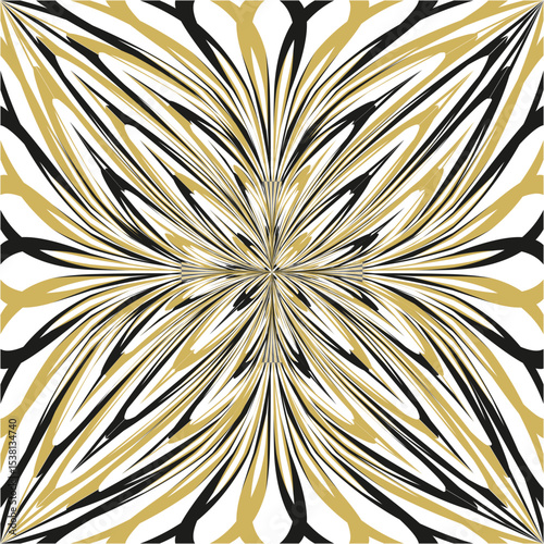 © Сергей Полякевич, Obraz premium Gold flower icon. Symmetric radial shape. Decorative ornate figure. Vector abstract form.