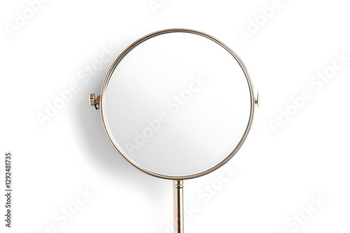 © Alex, Fototapeta premium Gold-framed Round Vanity Mirror on Stand for Makeup Application
