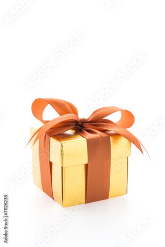 Obraz premium Gold gift box isolated on white background