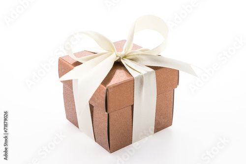 © siraphol, Obraz premium Gold gift box isolated on white background