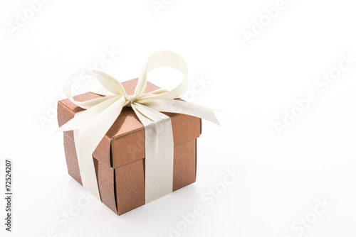 © siraphol, Obraz premium Gold gift box isolated on white background