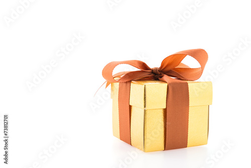 Obraz premium Gold gift box isolated on white background