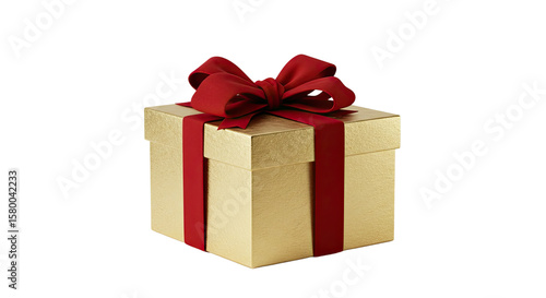 © fotostockuus, Obraz premium Gold Gift Box with Red Ribbon.