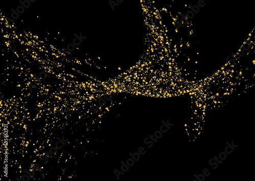 Fototapeta premium Gold glitter confetti on a black background. Shiny particles scattered, sand. Decorative element. Luxury background for your design, cards, invitations, vector