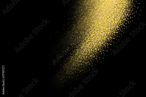 © photokozyr, Fototapeta premium Gold glitter explosion. Splashes of golden particles. Abstract grainy texture isolated on black background