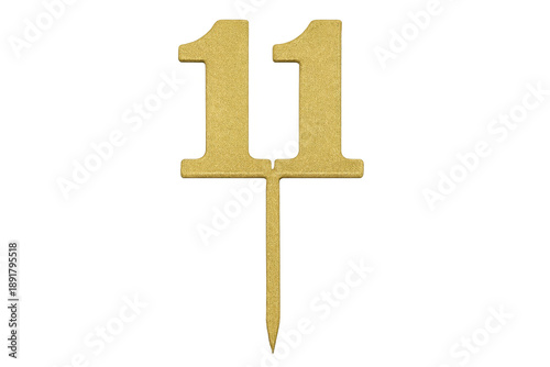 Obraz premium Gold glitter number eleven cake topper celebrating anniversary