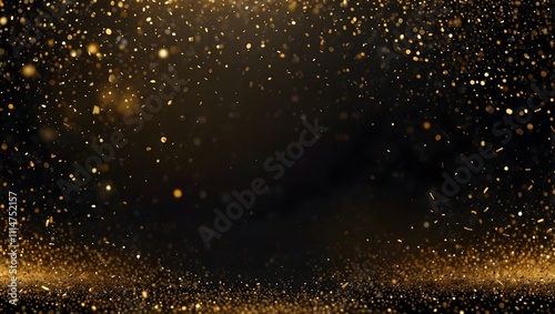 © Laiba, Obraz premium Gold glitter particles fall on a dark background.