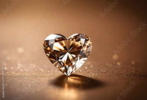 Fototapeta premium Gold heart shaped diamond on light brown background