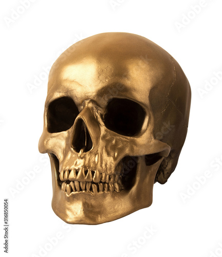© Alexandr, Obraz premium Gold human Skull Isolated