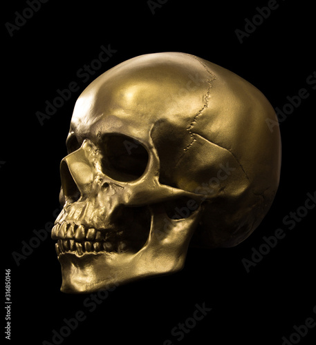 © Alexandr, Obraz premium Gold human Skull Isolated