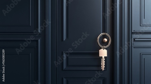 Obraz premium Gold key on dark door.