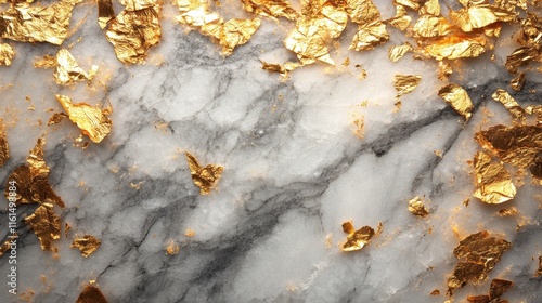 © Степан Озарчук, Obraz premium Gold leaf scattered across marble surface, ready for use in crafting elegant designs.