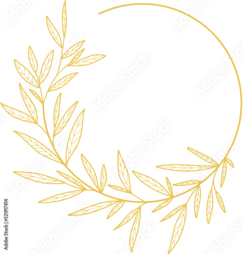 © Ann Design, Naklejka premium Gold Leaves Circle Frame