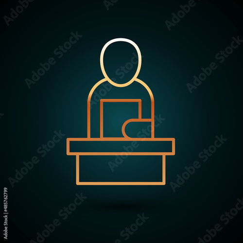Fototapeta premium Gold line Breaking news icon isolated on dark blue background. News on television. News anchor broadcasting. Mass media. Evening news. Vector